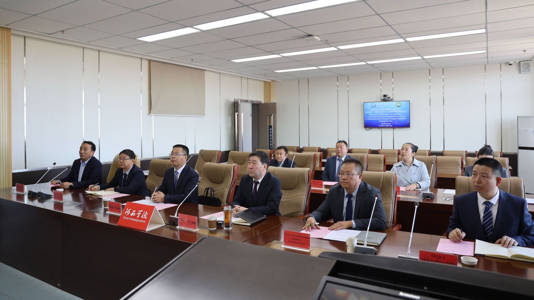 4月16日,学校与阿塞拜疆国立农业大学以线上形式举行共建河西学院阿塞拜疆教育、培训与文化中心专项合作协议签约仪式。阿塞拜疆国立农业大学校长扎法尔・古尔巴诺夫,学校党委副书记、校长李广出席并致辞,党委常委、副校长王国英主持仪式。