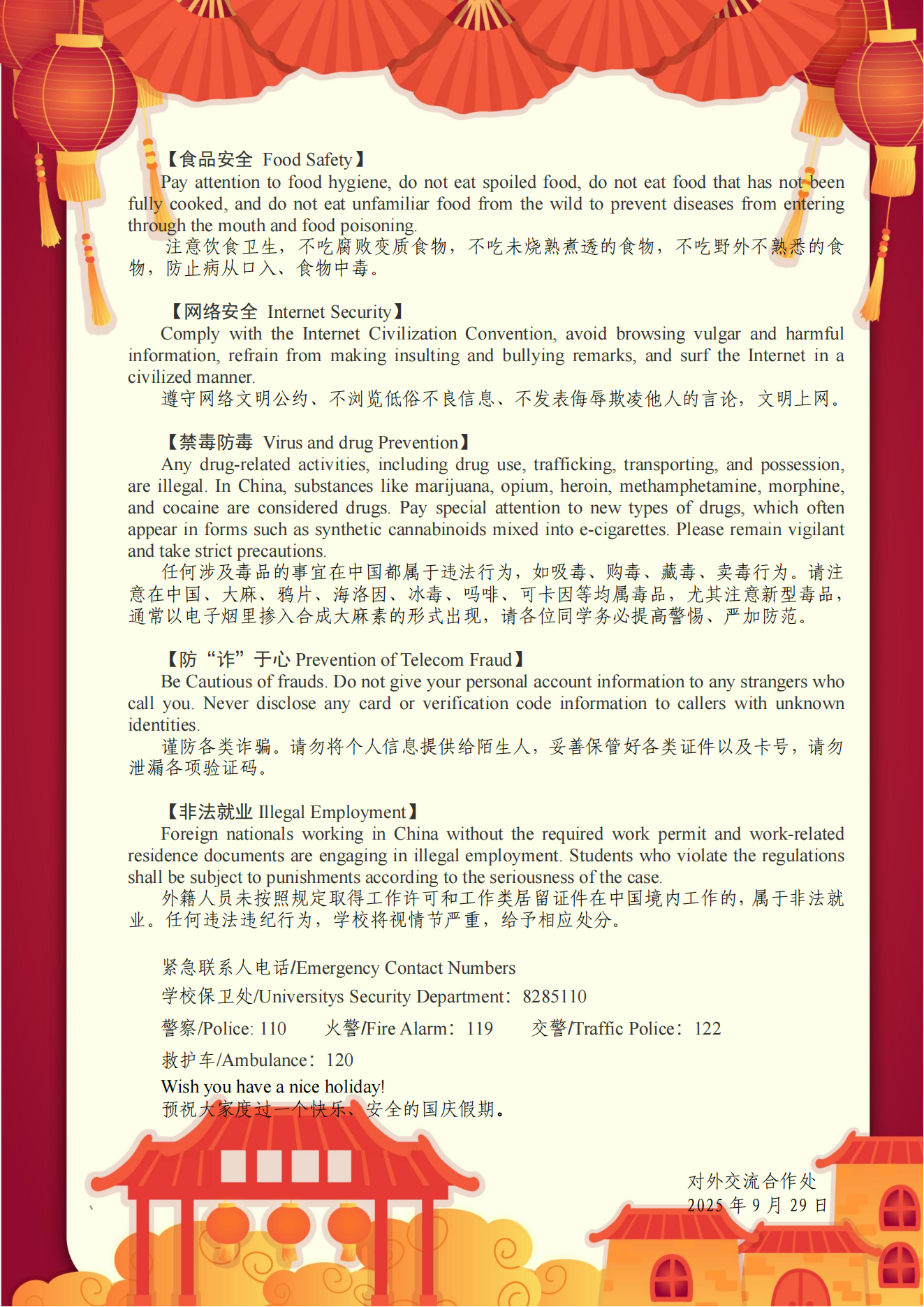 下一条:留学生寒假放假通知及安全提示 Уведомление о зимних каникулах и совет по безопасности для иностранных студентов